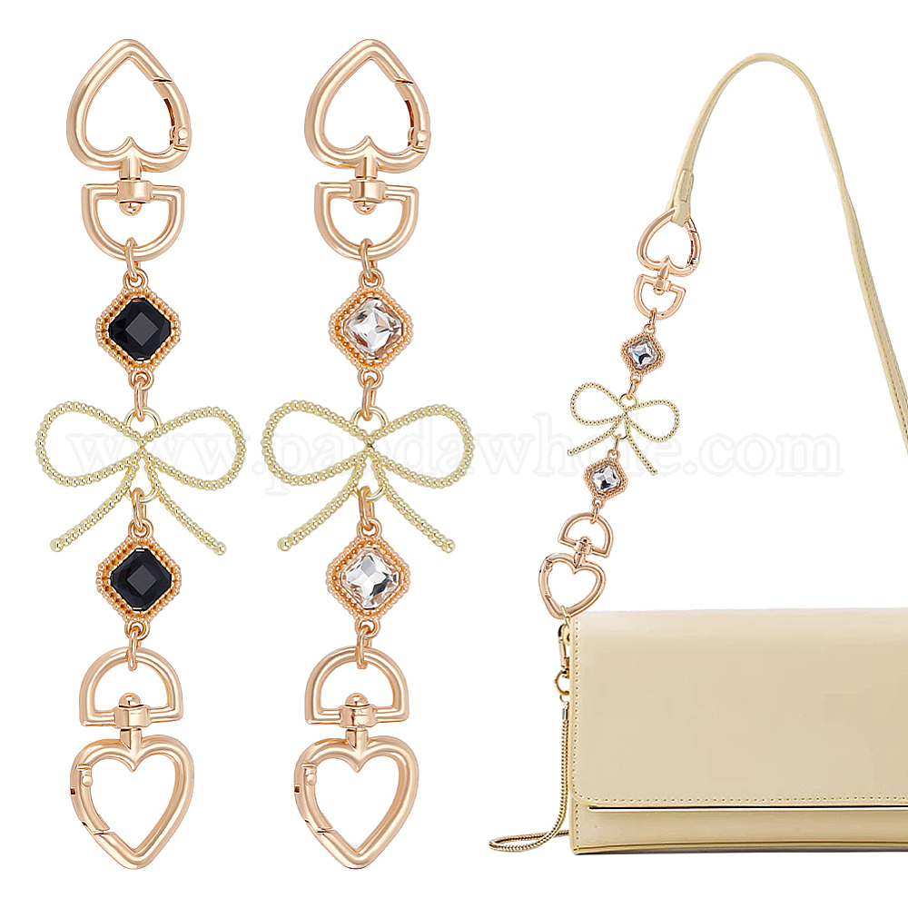 2шт. 2 цвета сплав стразы ромб бант цепочки для удлинения сумки, с сердечными застежками, для замены мешка, золотые