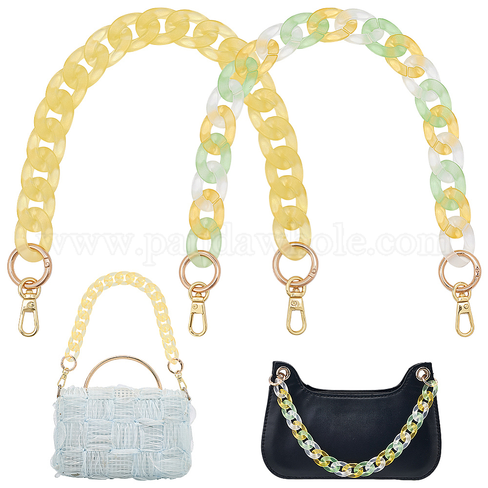 2шт. 2 варианты прозрачных акриловых цепочек для сумок, с поворотными застежками из сплава золотистого цвета и пружинными кольцами защелки., для замены ремней для мешков (037BB1)