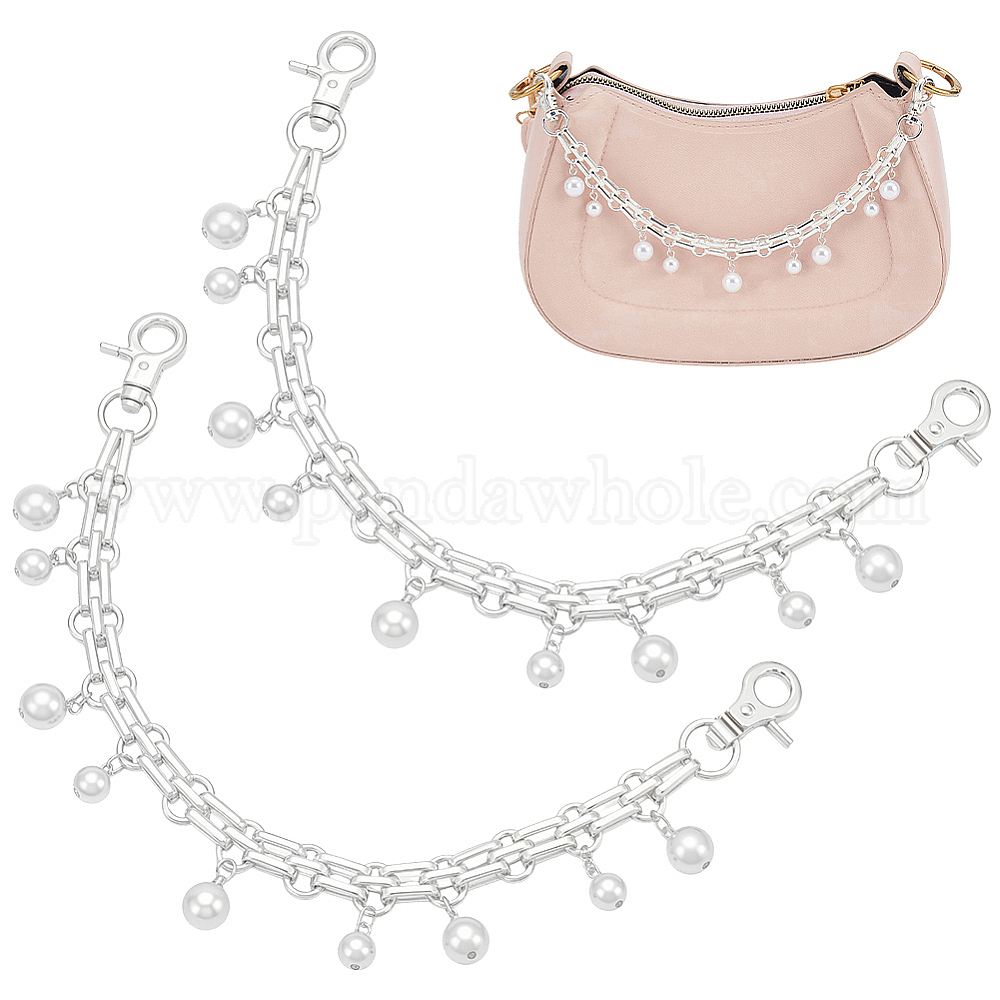 2шт. пластиковые имитации жемчуга круглые бусины кисточки железные цепочки для сумок, Сплав с застежками, белые