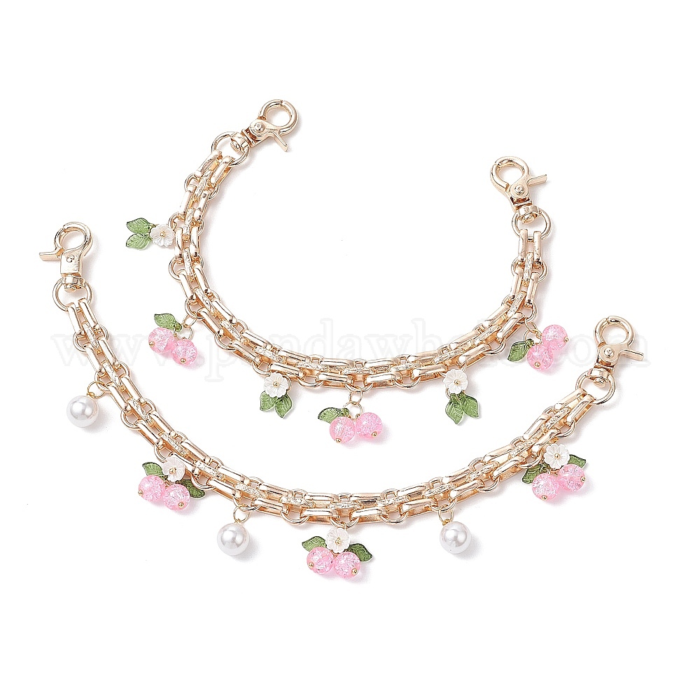 • Pink 2 шт. стеклянные декоративные цепочки для цветов и фруктов, с железной цепочкой и подвесками из искусственного жемчуга, розовые, 257~260 мм