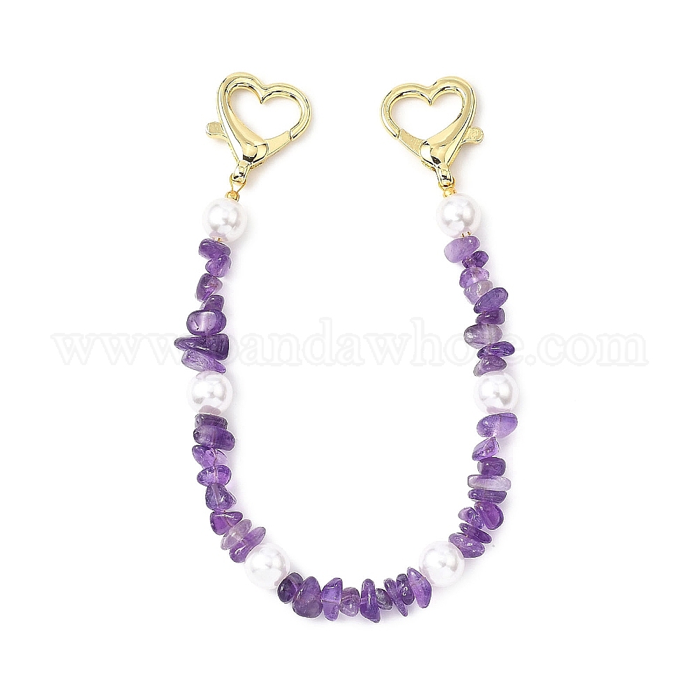 Декоративные цепочки для сумочек с бусинами из натуральных драгоценных камней, с застежками-карабинами в форме сердца из сплава и бусинами из АБС-пластика, имитирующими жемчуг, золотые