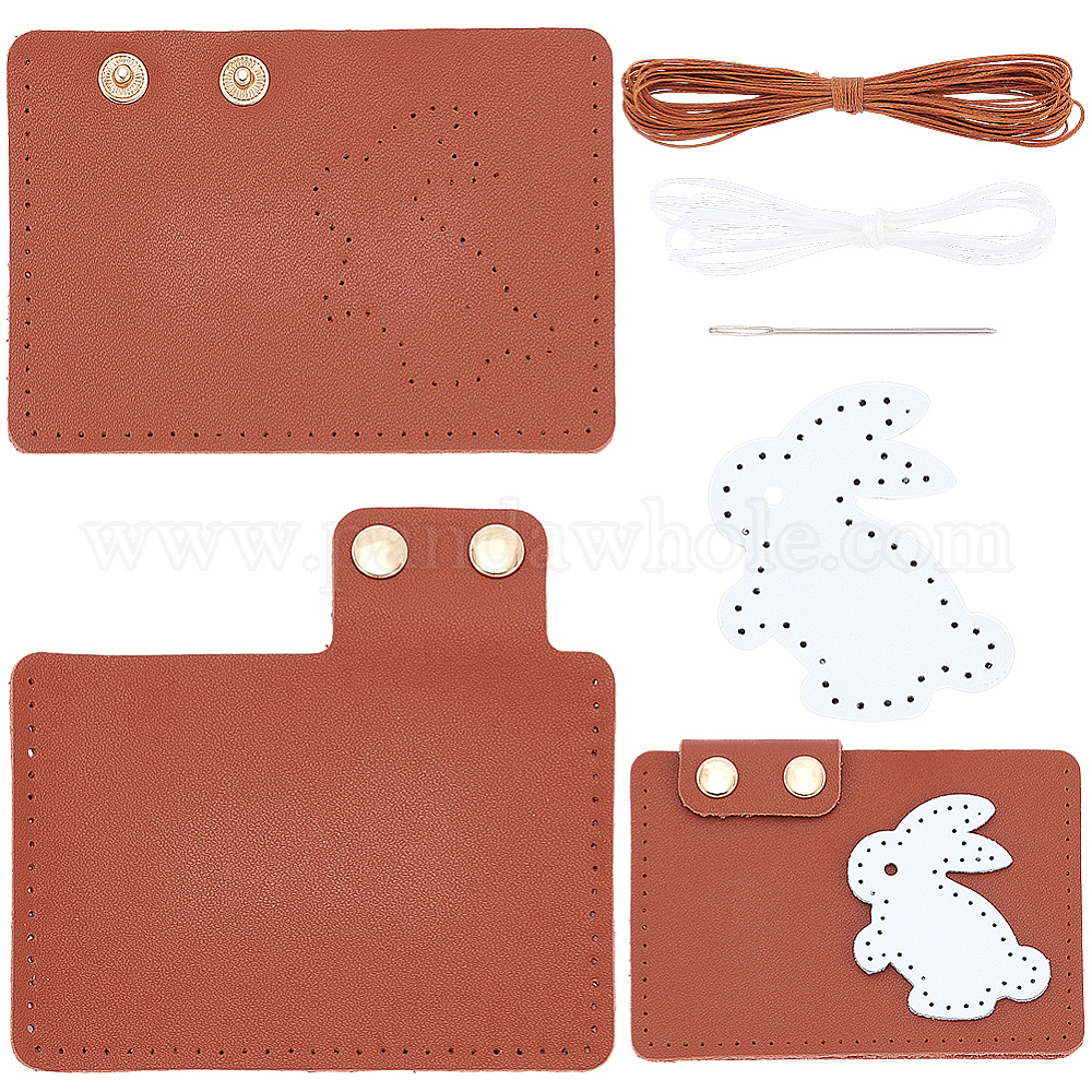 1 Набор для самостоятельного изготовления клатчей, включая кожаные листы и фурнитуру из сплавов., прямоугольник с кроликом, платина