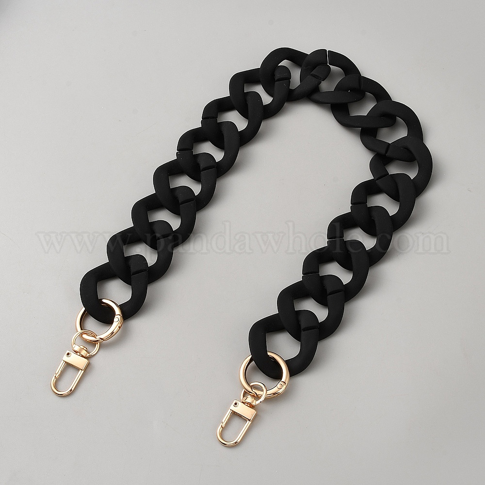 • Черный Прорезиненная акриловая витая цепочка для сумки, декоративные цепочки, Сплав с застежками, золотой свет, чёрные, 475 мм