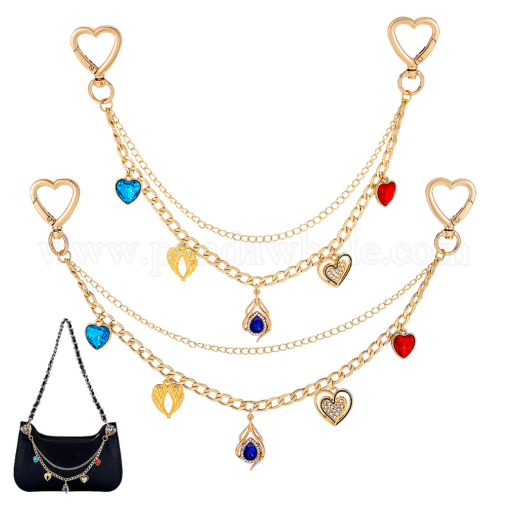2шт. цепочки из алюминиевого сплава с кисточками в форме сердца, двухслойные декоративные цепочки, золотые