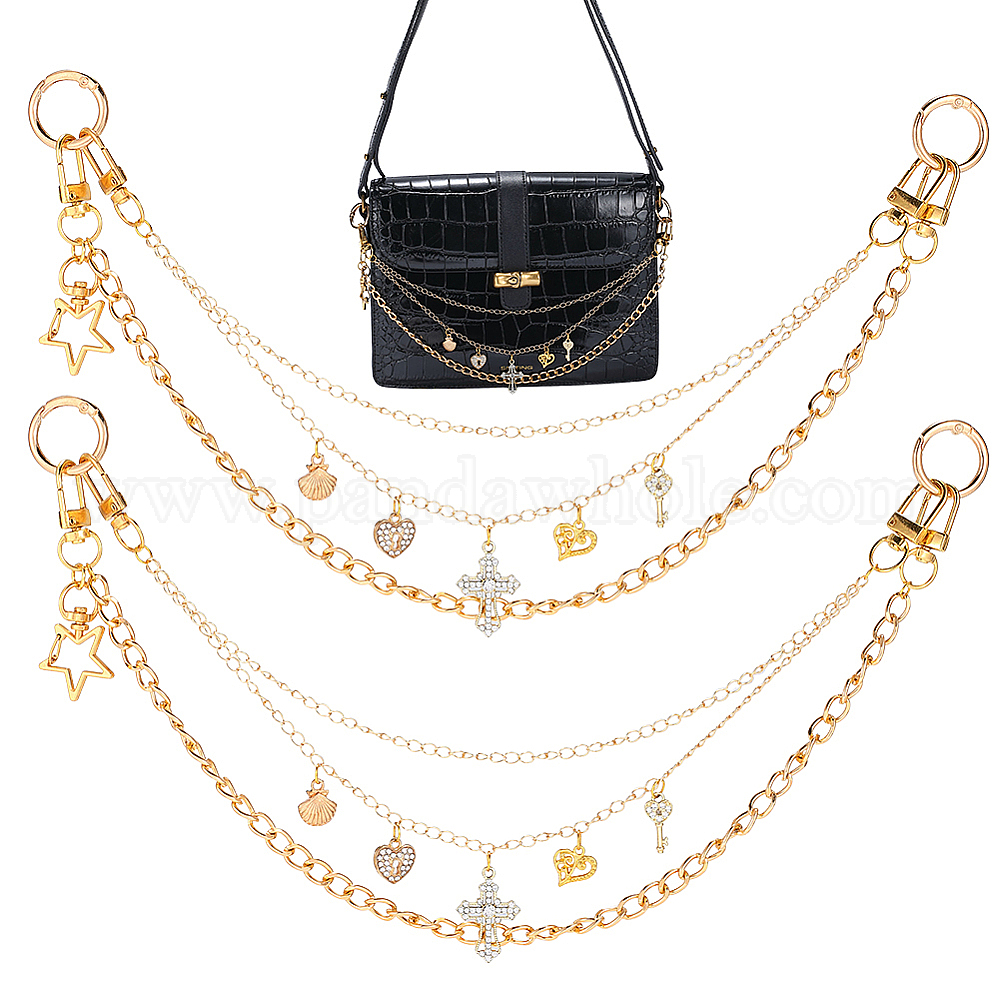 • Золотой 2 шт. алюминиевые цепи цепи-удлинители для сумок, с литыми пружинными кольцами, крестик, золотые, 348 мм