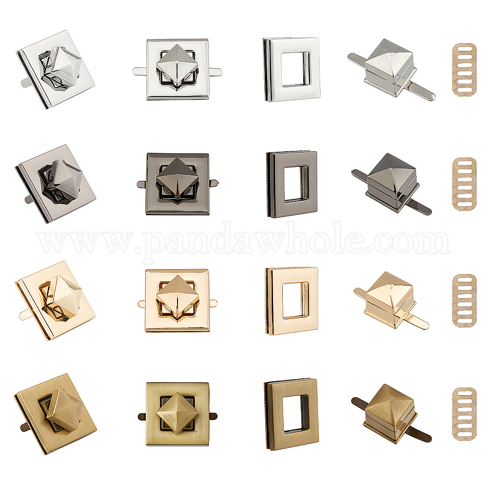 застежки замка мешка из цинкового сплава: квадрат: ширина 17 мм, 17 мм длиной, толщиной 28 мм , угол: 20.5x20.5x28 мм; квадратное кольцо: 31x31x6.5 мм, отверстия: 16x16 мм; прямоугольника: 26.5x12.5x1 мм, отверстие: 2x7 мм; 4 цвета, 1set / цвет, 4 комплекты / коробка;