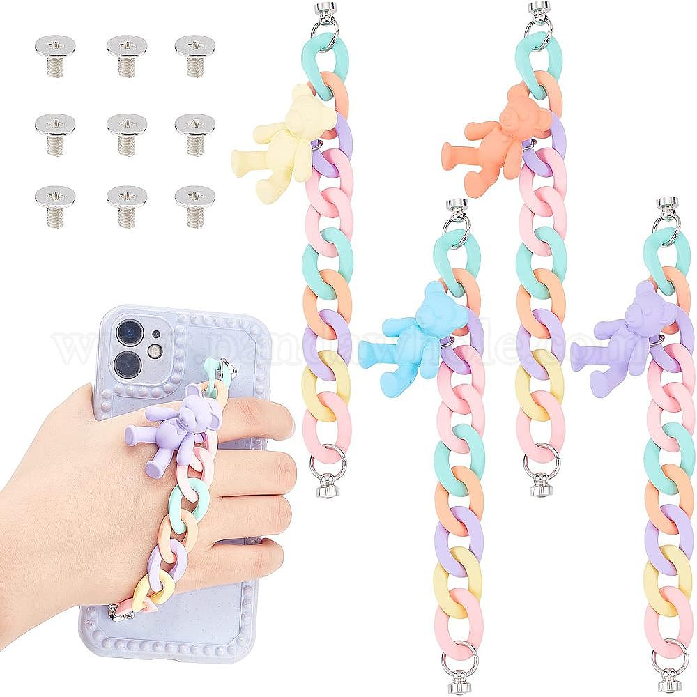 4 шт 4 стиль акриловая панцирная цепь для самодельных мобильных ремней, чехол для телефона украшения ювелирные аксессуары, с застежкой из сплава и железными винтами, медведь