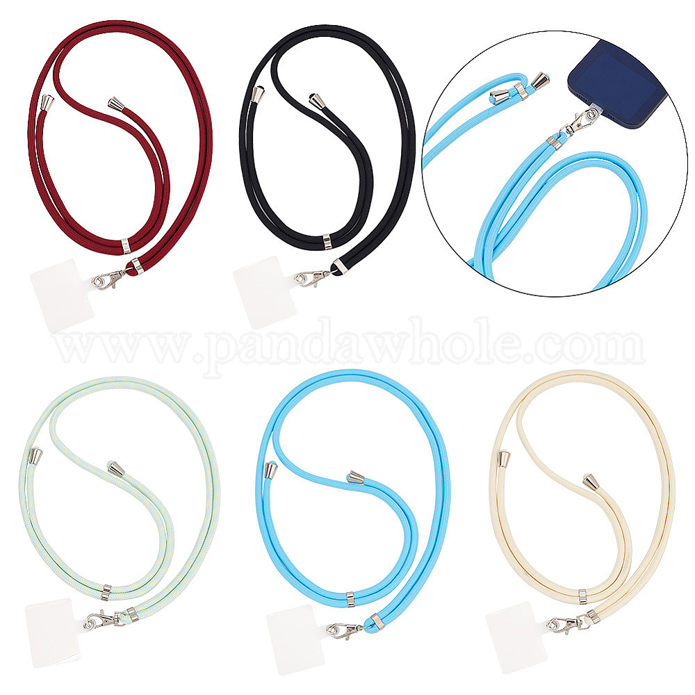 5 наборы 5 цвета регулируемые нейлоновые шнурки для телефона на шею, ремешок для телефона с нашивкой через плечо, с пластиковым и железным держателем