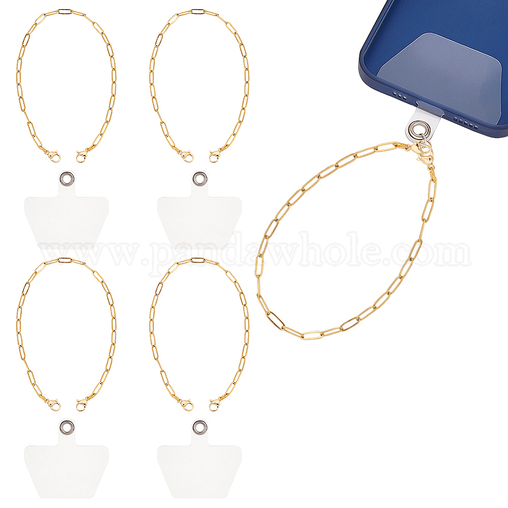 • Золотой 4 шт 304 цепи из нержавеющей стали ремешки для мобильных телефонов, с 304 из нержавеющей стали Lobster Claw застежками, с 4 шт. ПВХ пластиковый ремешок для сотового телефона, золотые, 8 шт / комплект