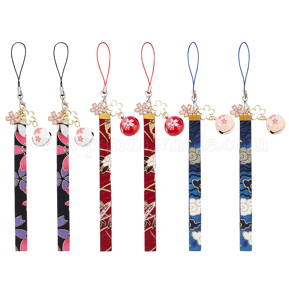 3шт японская эмаль сакура латунный колокольчик мобильные ремешки, с ремешком из полиэстера для украшения мобильного телефона