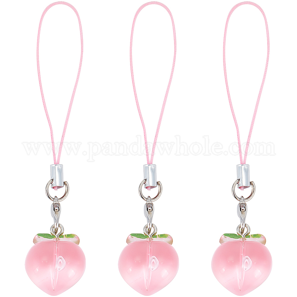 • Pink Подвеска на ремешок для мобильного телефона, подвесной брелок из персиковой смолы для женщин, с полиэфирным кордом, розовые, 8.4 см, 3 шт / комплект