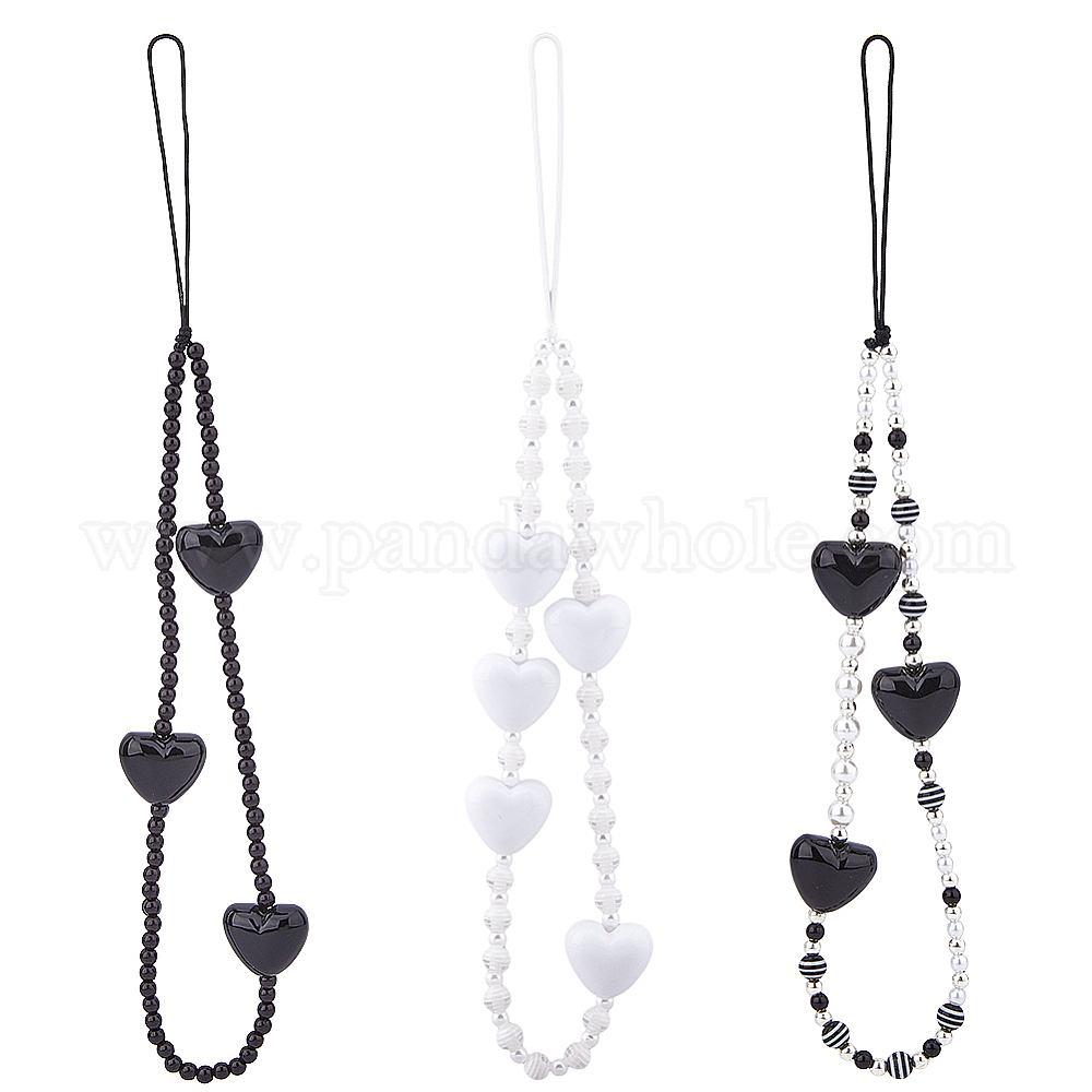 Сердечные акриловые и смоляные бусины мобильные ремни, с полиэстеровыми шнурами украшение мобильных аксессуаров