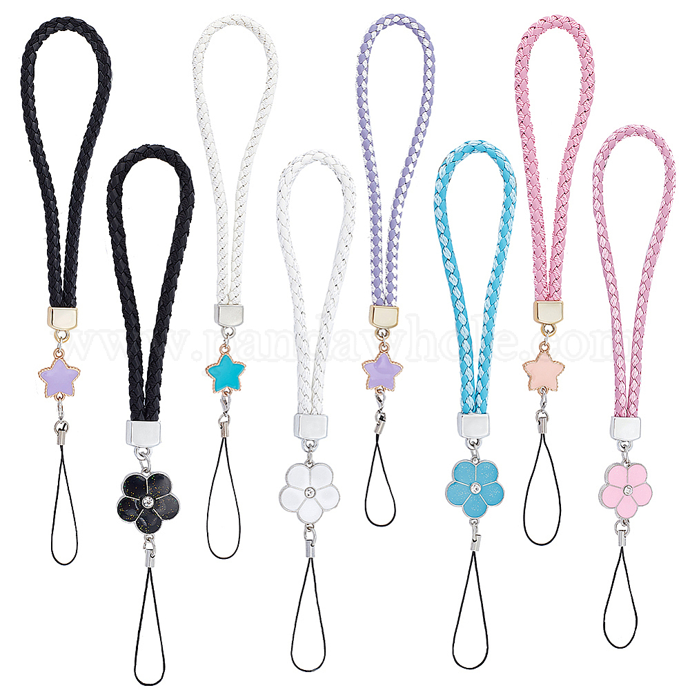 8 шт 8 стильный ремешок из искусственной кожи ремешок для телефона с подвесками в виде цветов и звезд, для кошелька брелок камера смартфон