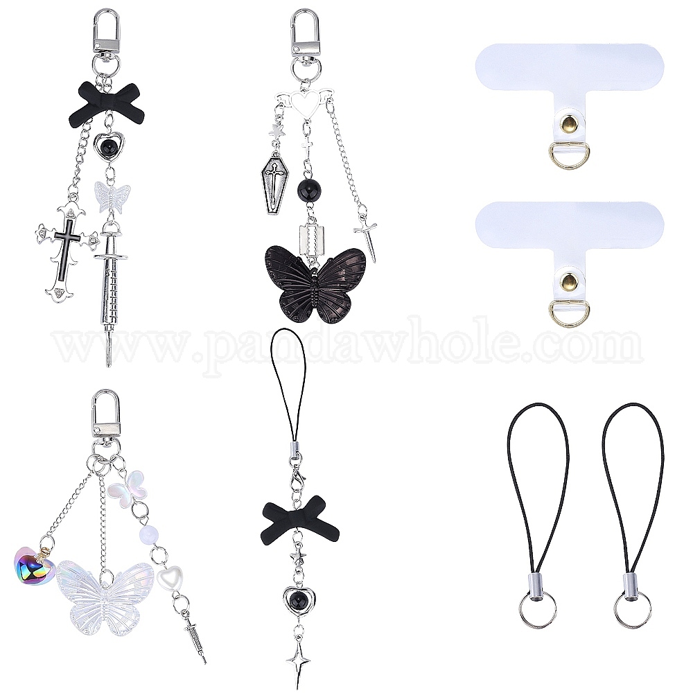4 комплекты мобильных ремешков из сплава, с акриловыми шариками, 2 заплатка для шнурка для мобильного телефона из ТПУ и 2 шт. нейлоновый шнур для изготовления петель для мобильного телефона