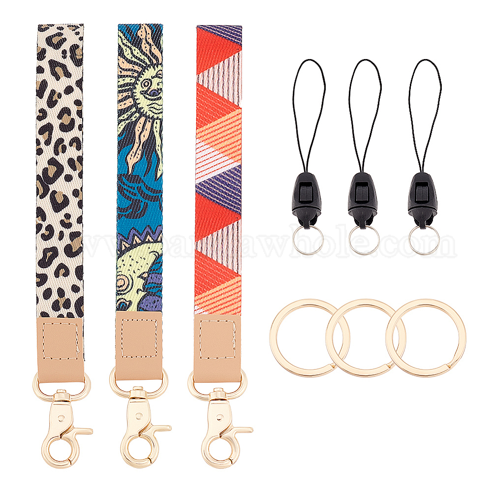3 наборы 3 цвета pu кожа мобильные ремни, с полиэстеровым шнуром и пластиковой фурнитурой, сплав застежка, брелоки