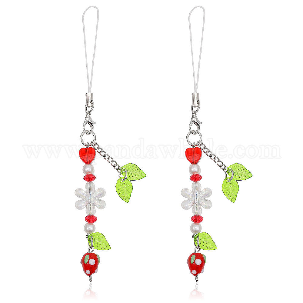 Ремешки для мобильного телефона в стиле лэмпворк ручной работы с клубникой, листьями и цветами, украшение сумки для мобильных аксессуаров