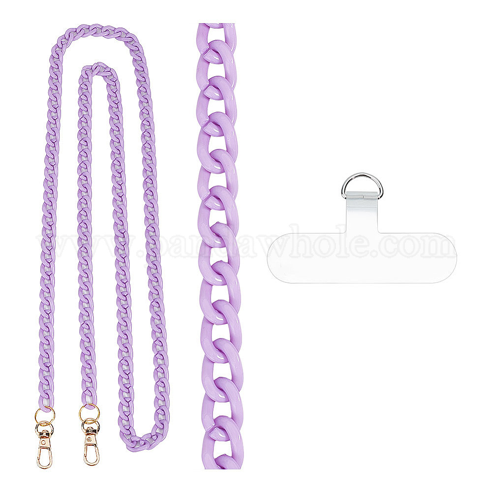 • Сливовый Акриловая бордюрная цепочка через плечо для мобильного телефона, с заплатой для шнурка для мобильного телефона из ТПУ и поворотными застежками из сплава, слива, 136 см