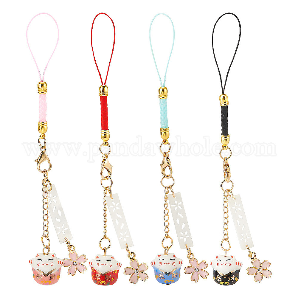 4 шт. 4 цвета японский стиль фарфор счастливый кот и сакура сплав эмаль мобильные ремешки, украшение мобильных аксессуаров из полиэстера