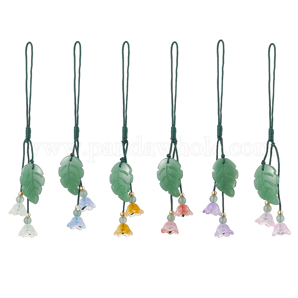 6 шт. 6 стильные ремешки для мобильных телефонов из натурального зеленого авантюрина, со стеклянным цветком