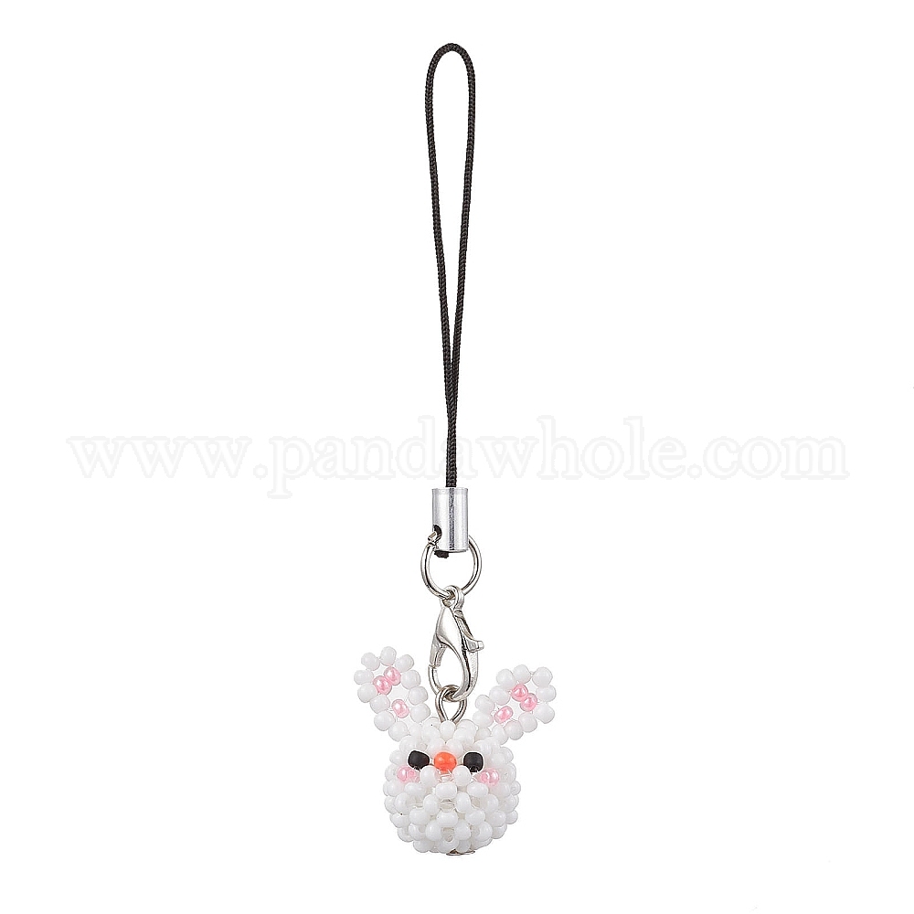Кролик стеклянные бусины подвески мобильные ремни, нейлоновый шнур петля мобильные аксессуары украшения
