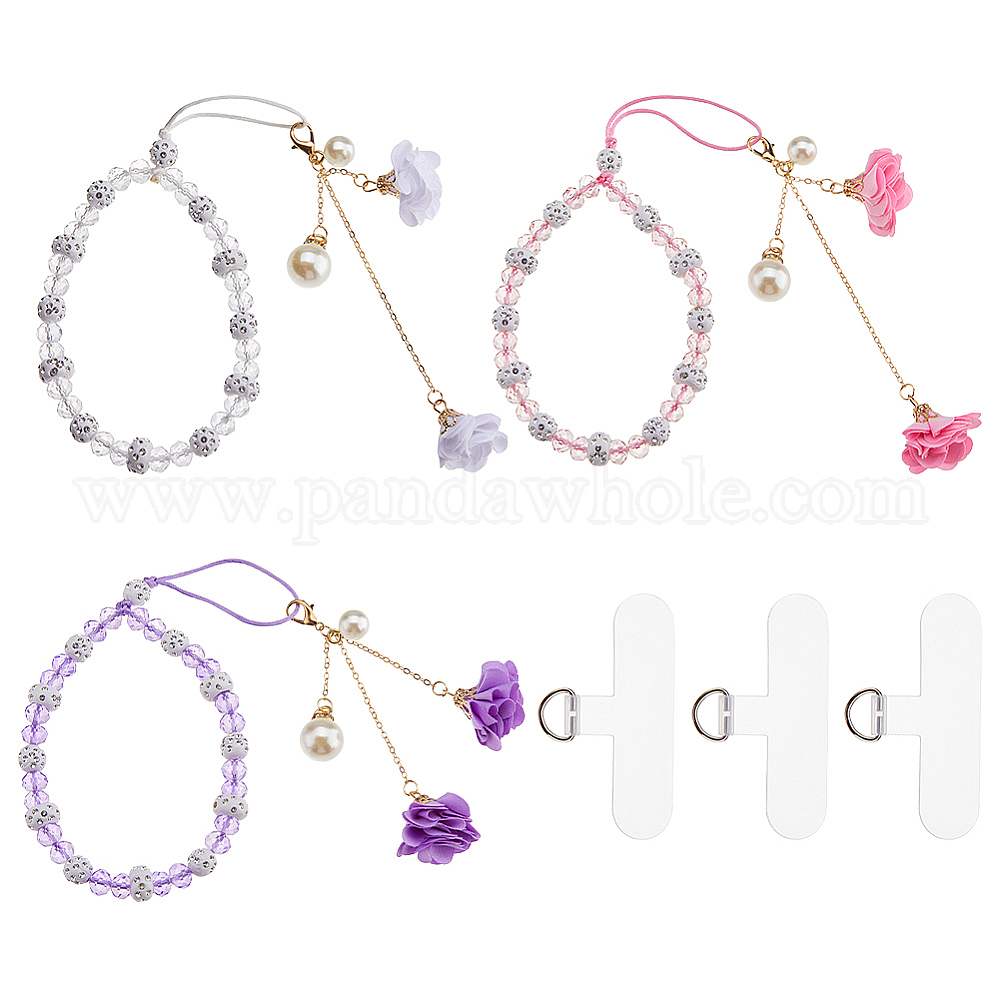 • (52) Непрозрачная лаванда 3 шт. 3 цвета стеклянные мобильные ремешки, ткани цветок, с 3шт. пластиковый шнурок для мобильного телефона, разноцветные, 310 мм