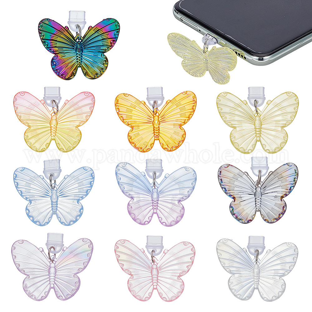 10шт пластиковые мобильные пылезащитные заглушки, с акриловыми подвесками, бабочка