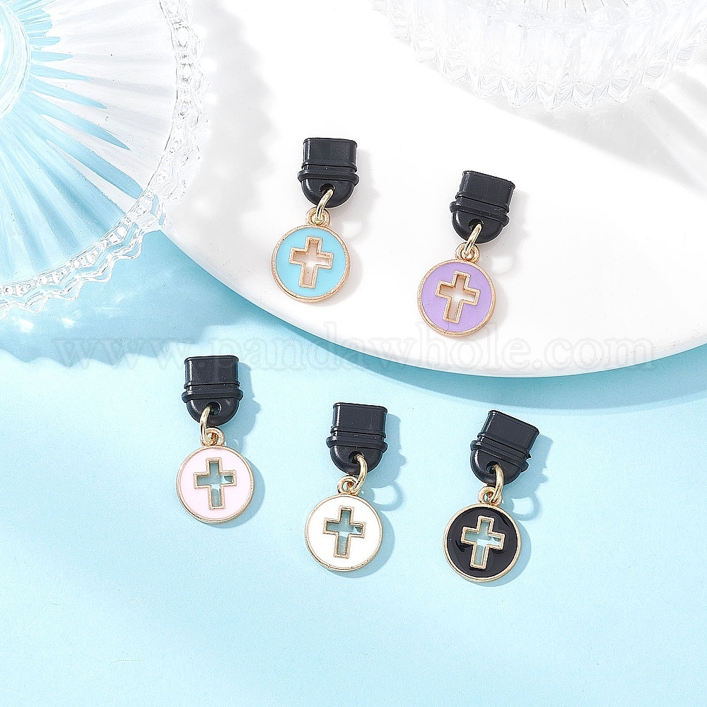 • (52) Непрозрачная лаванда Эмалированные вилки для мобильных телефонов, плоский круглый с полым крестом, золотой свет, разноцветные, 27 мм