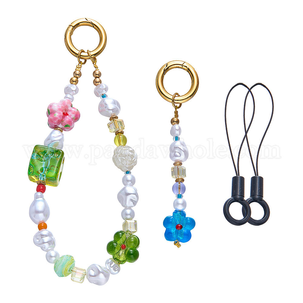 • (52) Непрозрачная лаванда 2 шт. ремни для мобильных телефонов из АБС-пластика с имитацией жемчуга и стеклянных зерен, с 316 пружинными кольцами из нержавеющей стали и нейлоновыми шнурами для крепления на мобильную ленту, цветок, золотые, разноцветные, 85~125 мм