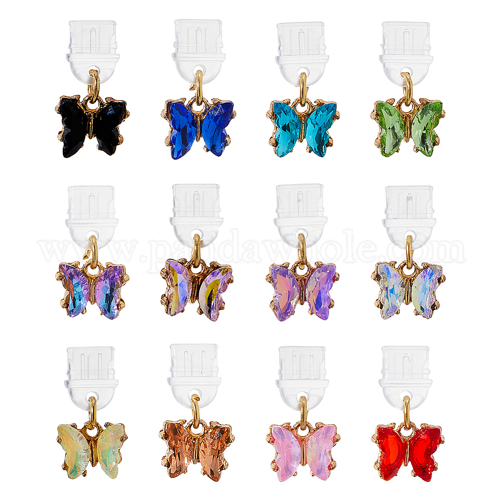 12шт 12 цвета ПВХ мобильные пылезащитные заглушки, с подвесками-бабочками из сплава стекла, золотой свет