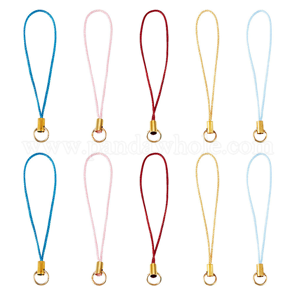 25 шт. 5 цветная полиэфирная металлизированная нить для изготовления ремней для мобильных телефонов, с 304 кольцами из нержавеющей стали, золотые (036Y8K)