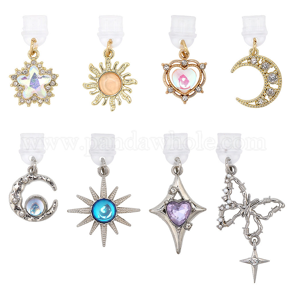8 шт. пылезащитные заглушки для мобильных телефонов из сплава стекла «солнце, звезда, луна», с пластиковыми заглушками