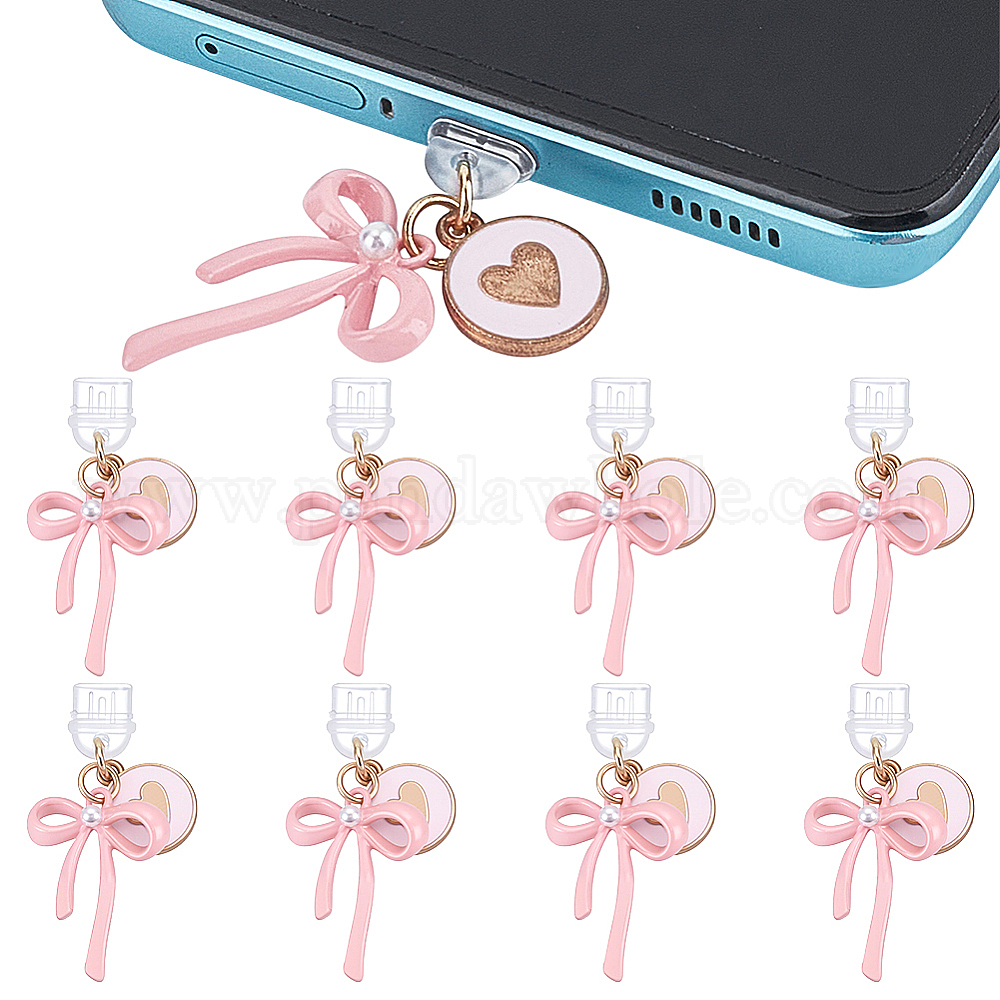 8шт. ПВХ мобильные пылезащитные заглушки, с подвесками из эмали и сплава , бантом, золотые