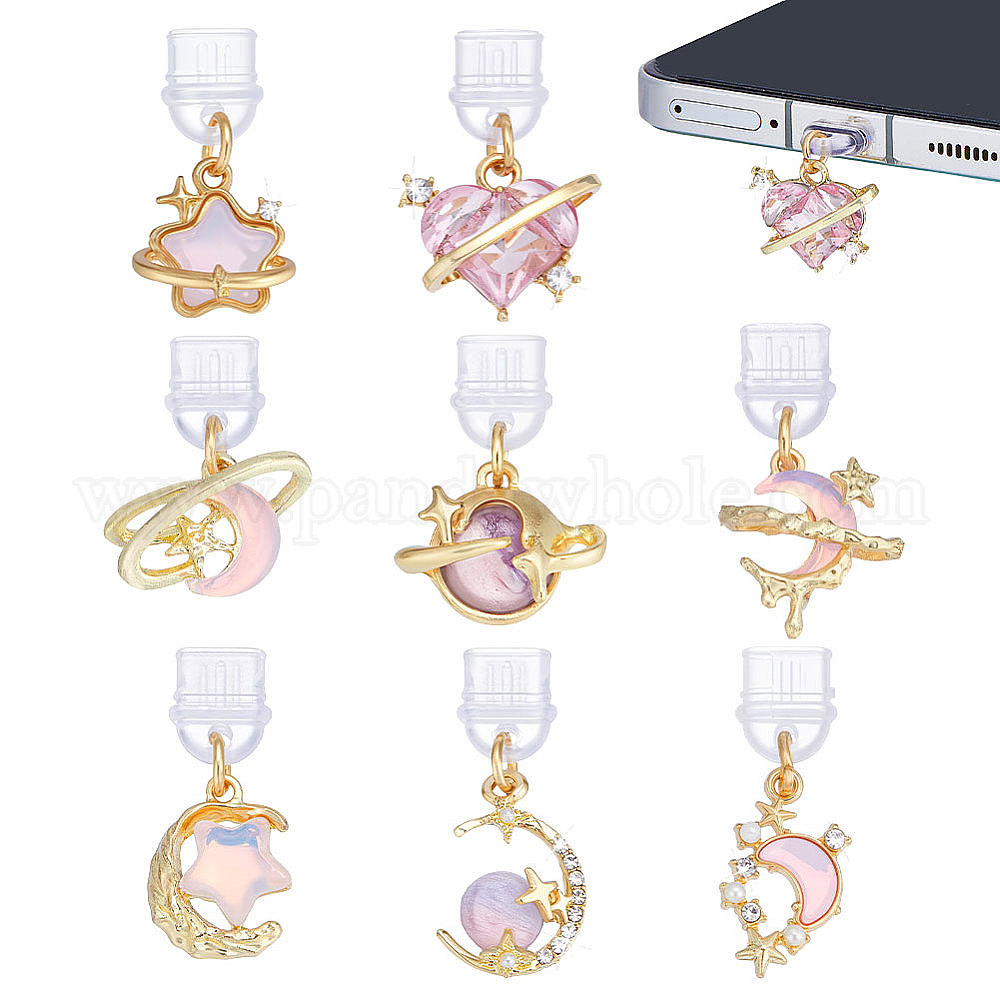 • (52) Непрозрачная лаванда 8шт 8 стили ПВХ мобильные пылезащитные заглушки, с подвесками сплава cmолы, луна / звезда / планета, золотые, разноцветные, 27~32 мм, 1 шт / стиль
