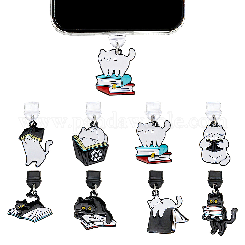 16 шт. 8 стильные пластиковые мобильные пылезащитные заглушки в форме кошки, с подвесками из эмали и сплава , платина