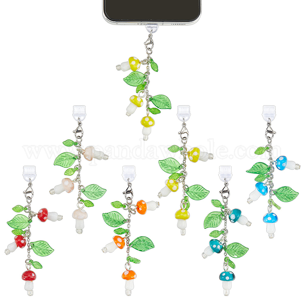 16шт 8 стиль пластиковые мобильные пылезащитные заглушки, с подвесками ручной работы из лэмпворка и акрила, гриб, платина (0382YF)