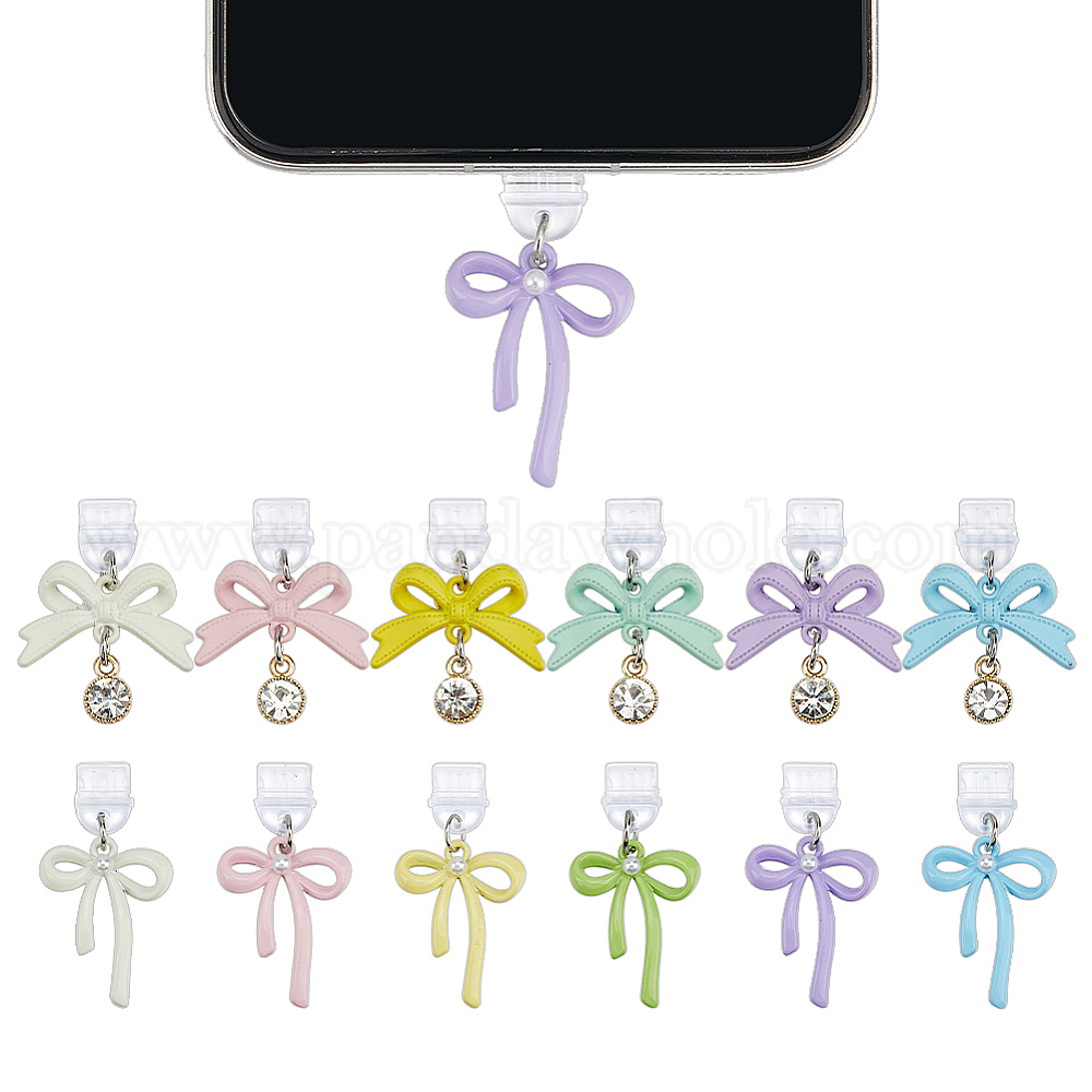 • (52) Непрозрачная лаванда 12шт. ПВХ мобильные пылезащитные заглушки, Сплав с подвесками, платина, разноцветные, 36~37 мм