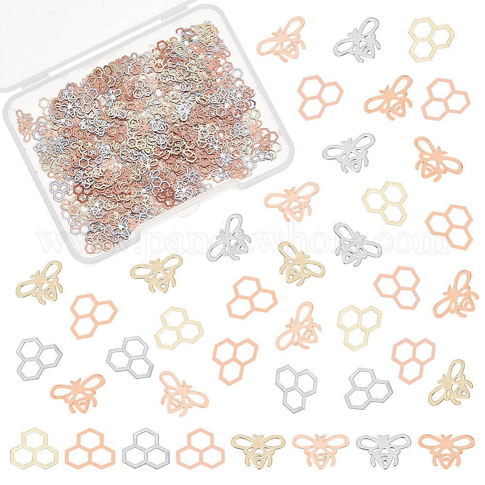 640шт 4 стиль латунные кабошоны, аксессуары для украшения ногтей для женщин, пчела и шестиугольник
