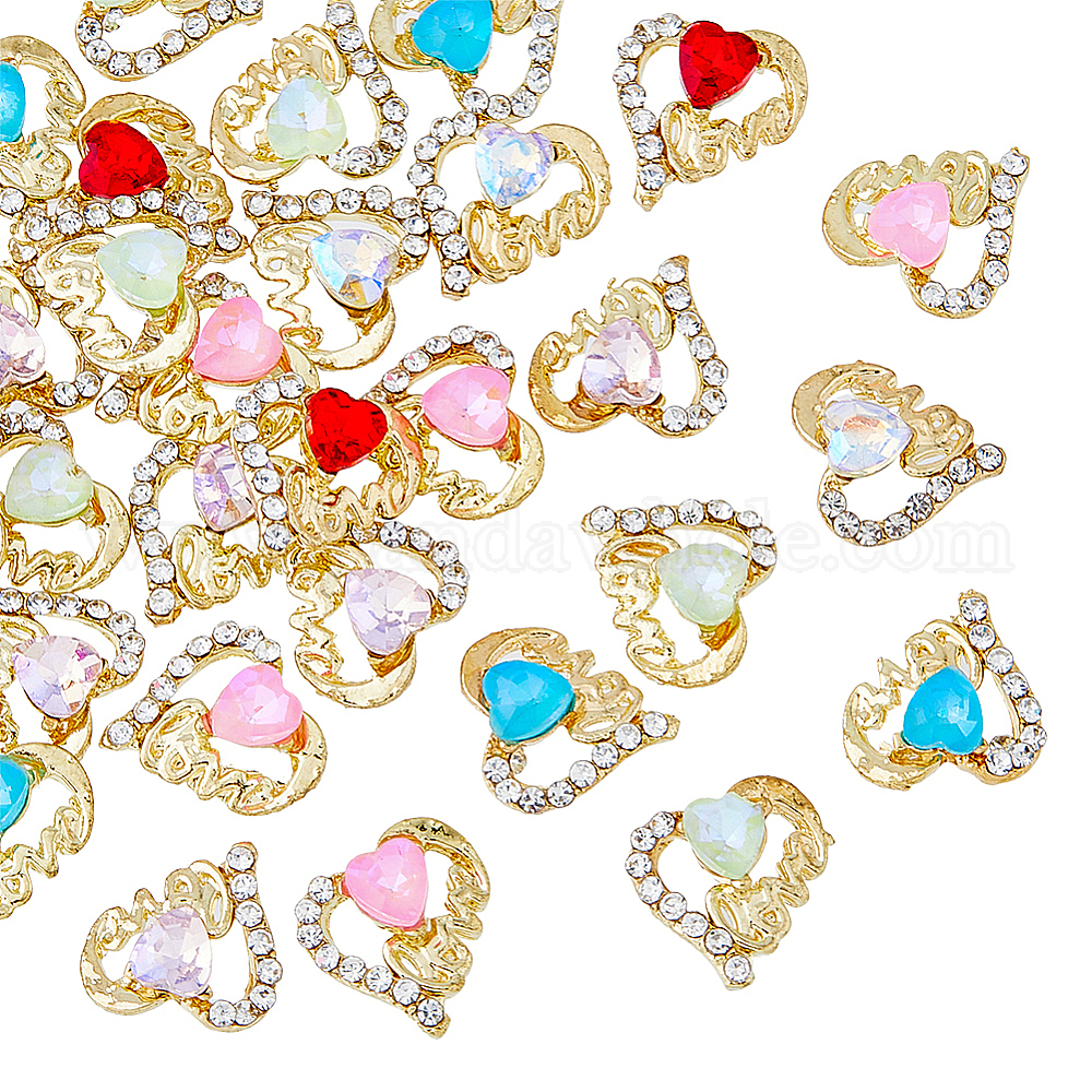 36шт 6 цвета сплав горный хрусталь кабошоны, для украшения ногтей, золотые, сердце
