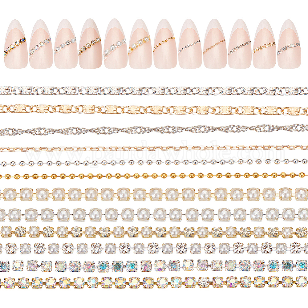 2 наборы 2 цепочки из сплава со стразами и пластиковой имитацией жемчуга, ногтей декоративные аксессуары