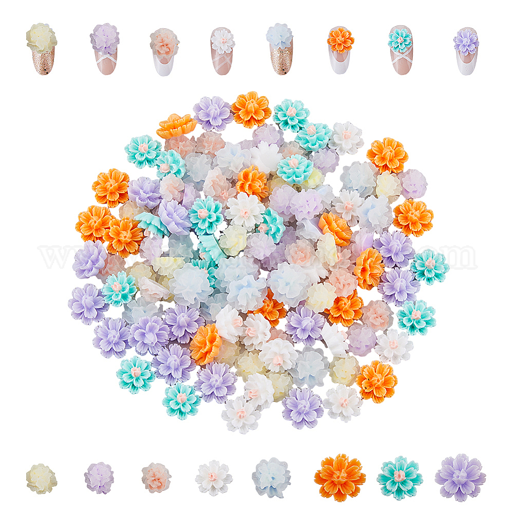 120шт 8 стили цветок смоляные кабошоны, светится в темноте, аксессуары для нейл-арта украшения (02J7RC)