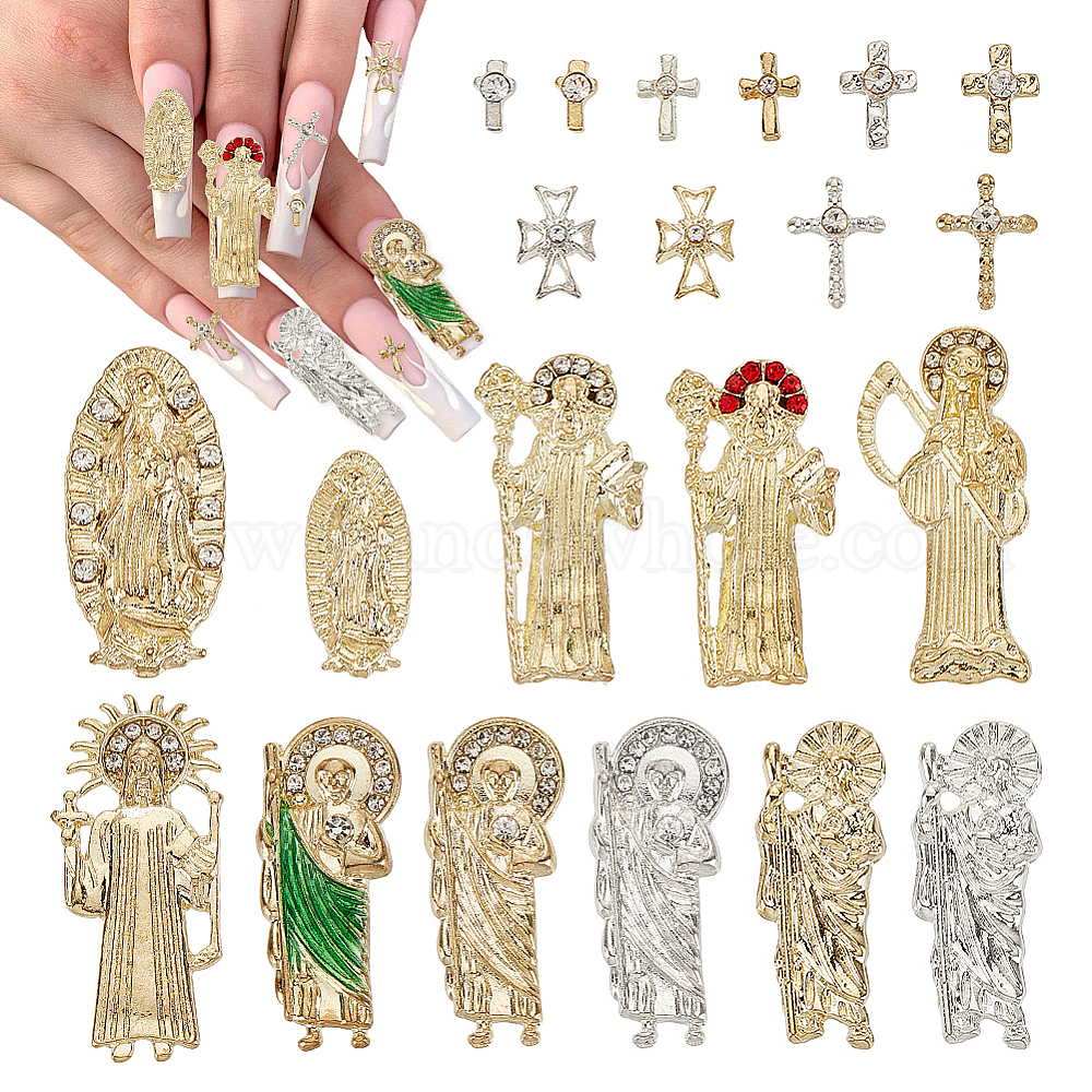 42 шт 21 стиль кабошоны из сплава, со стеклянными стразами, ногтей декоративные аксессуары, разнообразные, религия