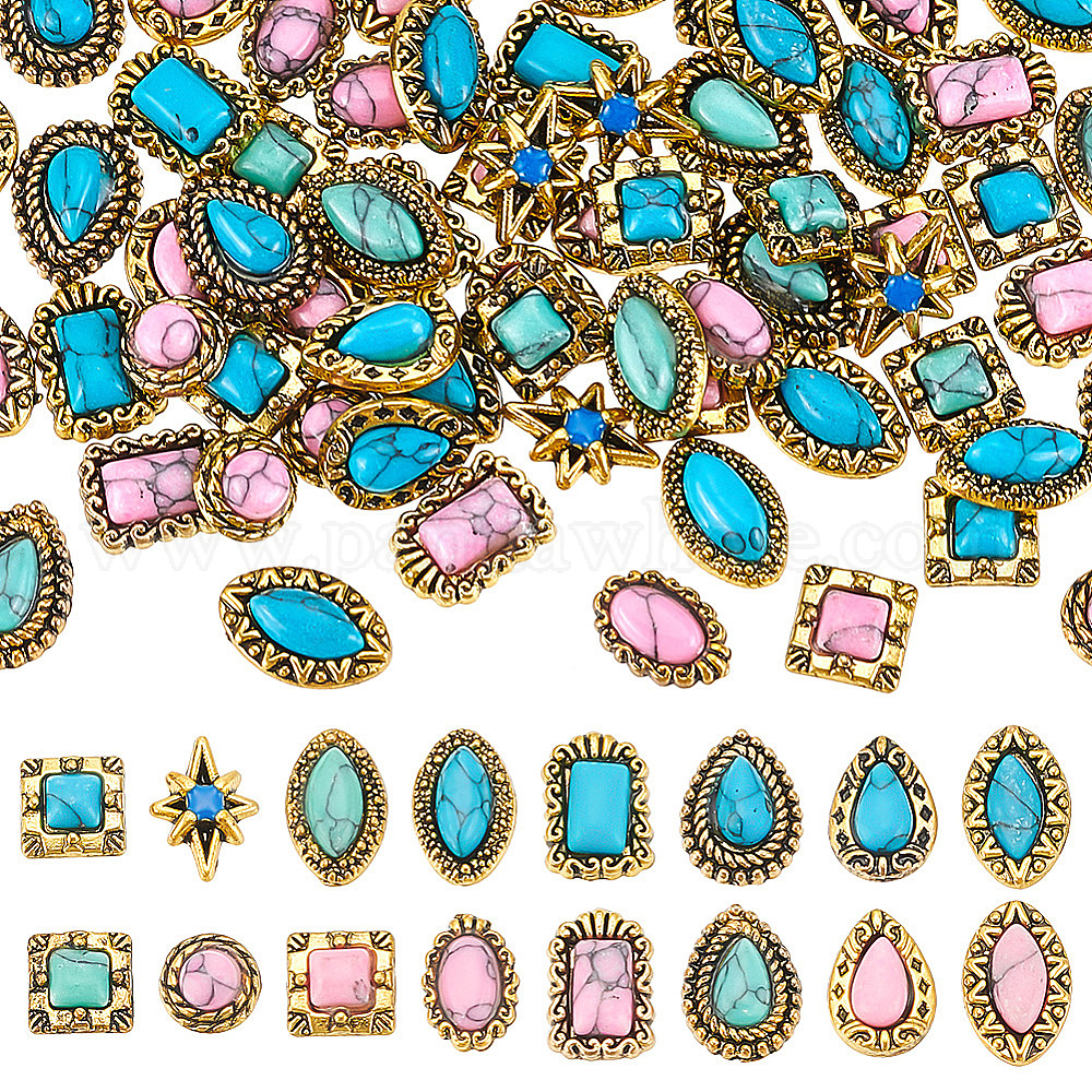 64шт 16 стиль цинковый сплав кабошоны, с пластиковой бисера, аксессуары для украшения ногтей для женщин, разнообразные