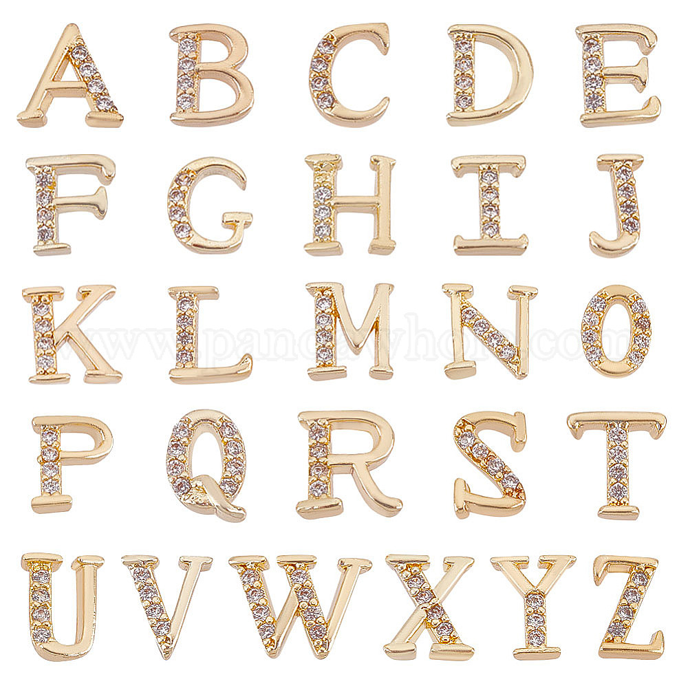 26шт 26 стиль латунные кабошоны, ногтей декоративные аксессуары, с кубического циркония, буквы
