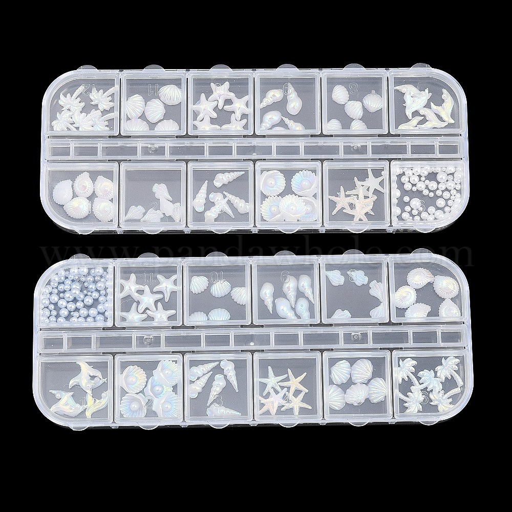 • Белый 12 Сетки, морская тематика, кабошоны из смолы, ногтей декоративные аксессуары, разнообразные, белые, 2~10.5x2~8.5x2~4.5 мм