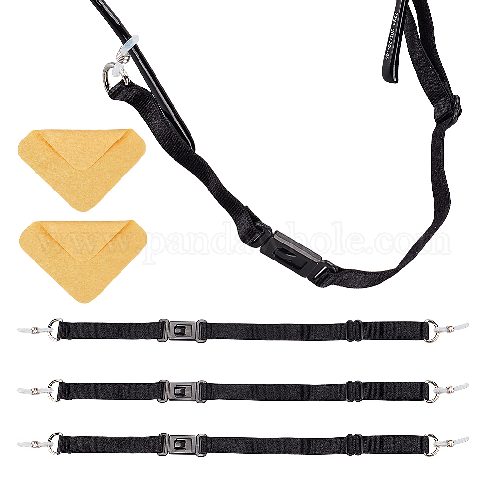 4шт. нейлоновый регулируемый спортивный ремешок для очков с пряжкой, с силиконовыми накладками, ремни держателя повязки на голову для очков, с тканью для чистки очков из замшевого волокна (1 шт.)