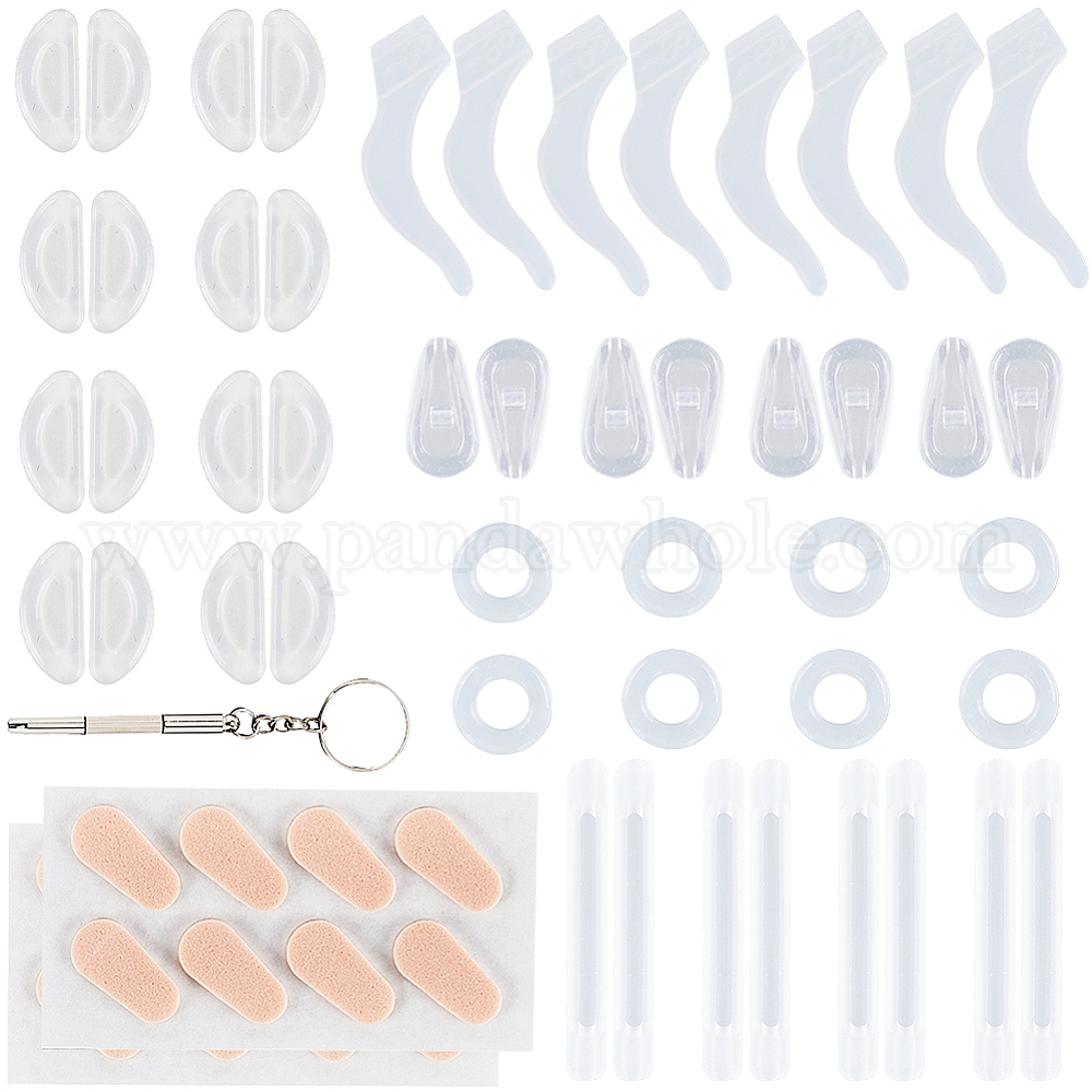 Набор фиксаторов для очков, включая наклейку на носовую подушечку из мягкой губки eva, силиконовые подушечки для ушей и носоупор для очков, железный мини-брелок отвертка для очков (02FY5P)
