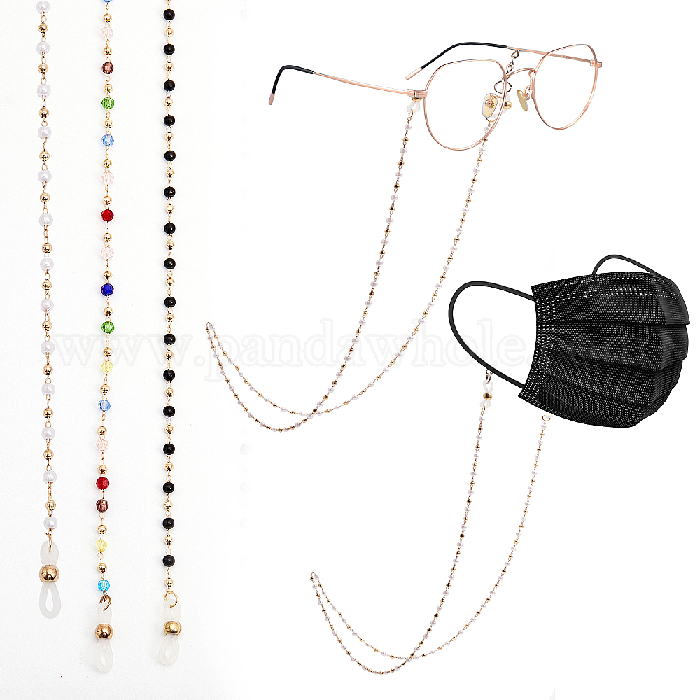 3шт 3 цветные пластиковые круглые бусины цепочки для очков, золотой латунный ремешок на шею для очков, с резиновыми петлями