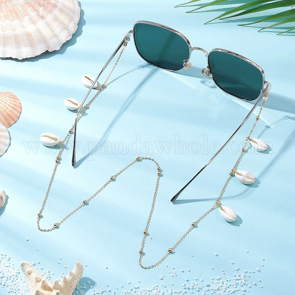 Латунный кабель цепочки для очков, с натуральными бусинами из ракушек каури и резиновыми петлями на концах