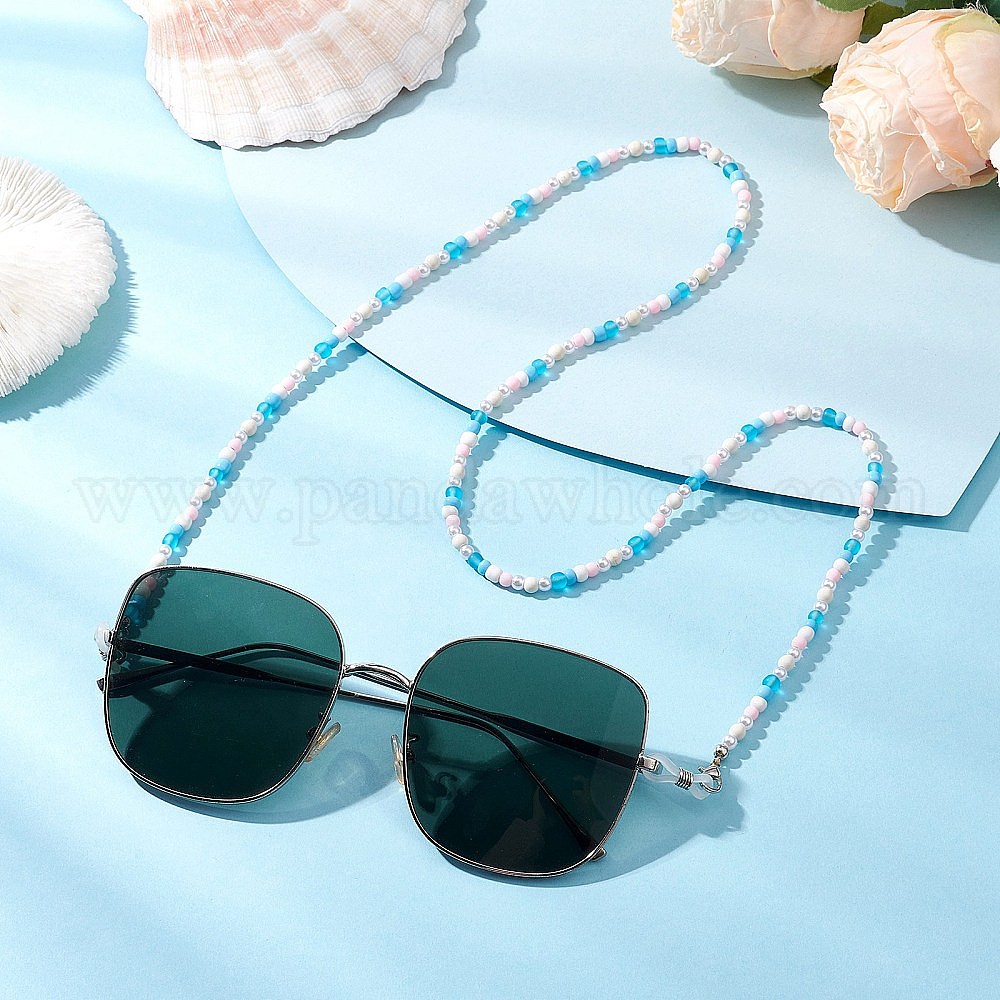 • Платина Синтетическая бирюза, стеклянные семена и пластиковые бусины для очков для взрослых, с карабинами из цинкового сплава и резиновыми петлями на концах, платина, 700 мм
