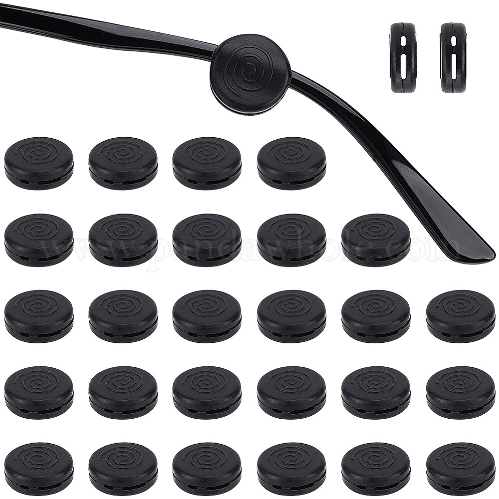 • Черный 48шт. силиконовые заушники для очков, противоскользящий держатель, плоско-круглые, чёрные, 13.5x5.5 мм